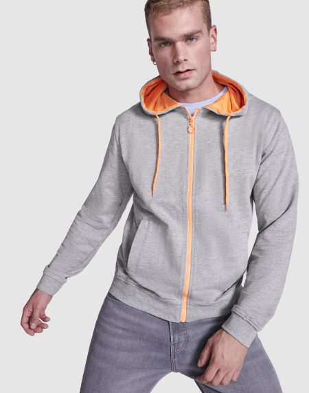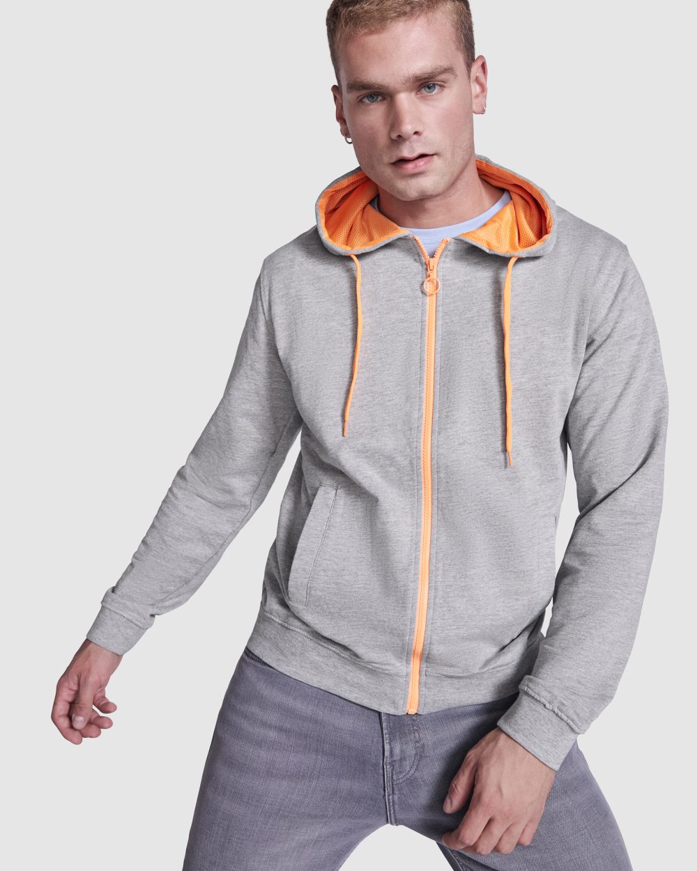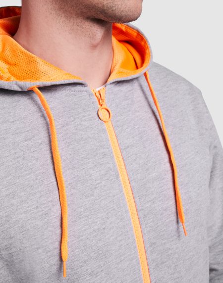 Hood with inner lining in micro-perforated polyester fabric, in contrasting fluorescent color.