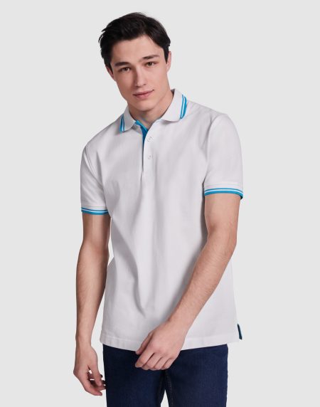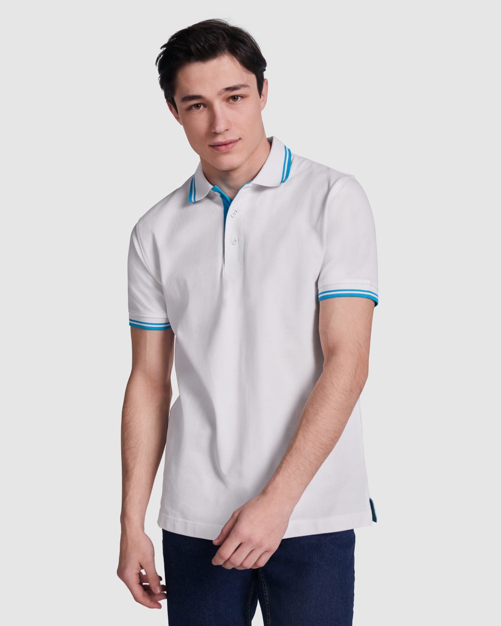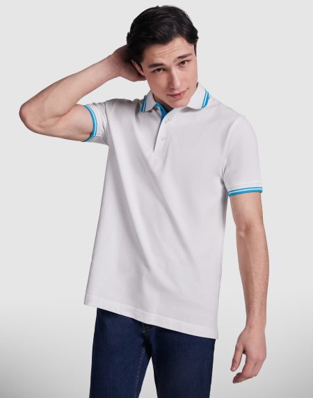 Short-sleeved polo shirt with 3-button lapel in the same shade.