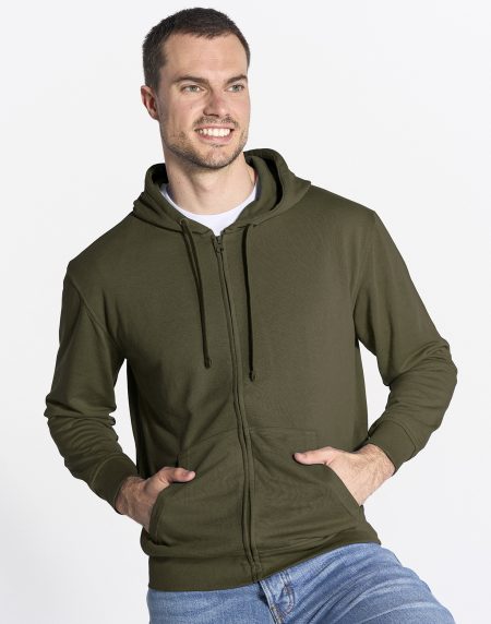 Unisex hooded sweatshirt with full-zip hood and kangaroo pocket.
