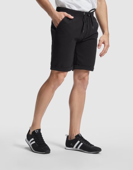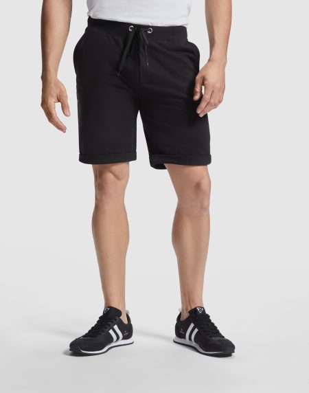 Calção desportivo com cintura elástica larga e cordão ajustável.